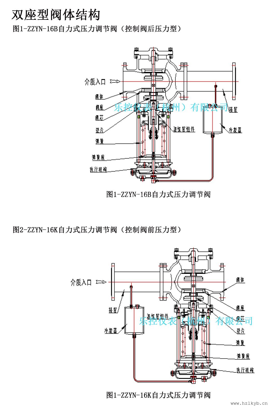 (1)ZZYN-25B蒸汽大流量减压阀自力式压力调节阀由于流体压力作用在两个阀芯上(平衡式结构),不平衡力相互抵消很多,因此允许压差大。