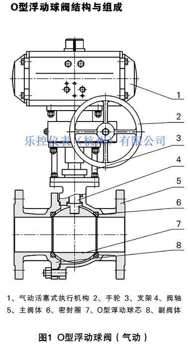 ZSHO-16K气动活塞式O型切断阀主要由气动活塞式执行机构,切断型球阀、两部分组成。根据用户需要,也可在执行机构和切断阀之间配置手轮机构,其结构见图一。