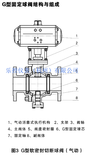 当气动执行机构接受到来自调节仪表的信号,带动阀杆、球芯作旋转运动,使阀由开(关)的位置转到关(开)的位置,达到对管道内介质流通、切断的控制。